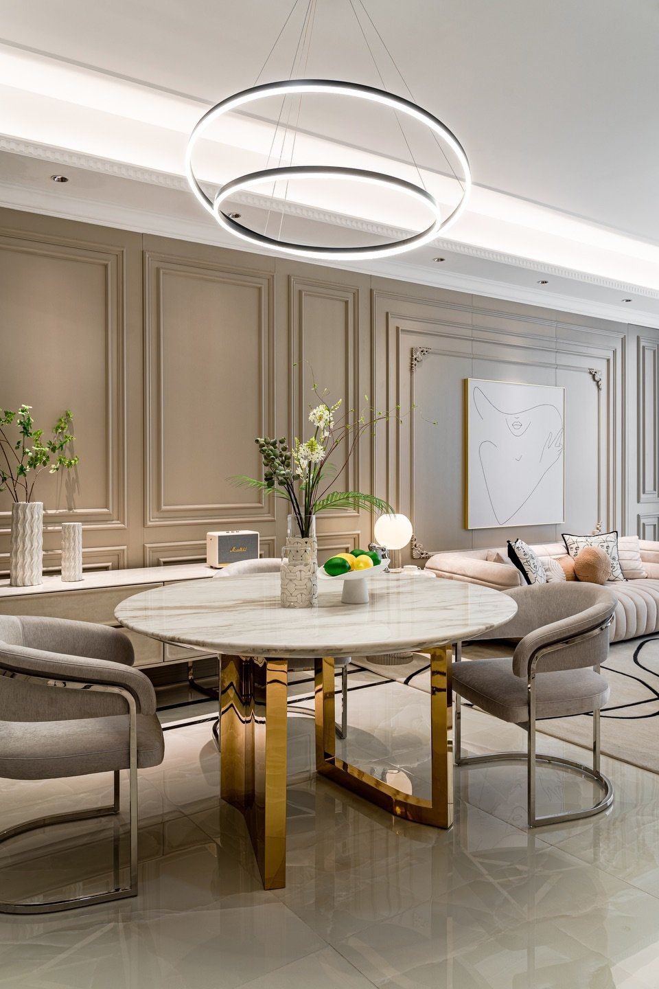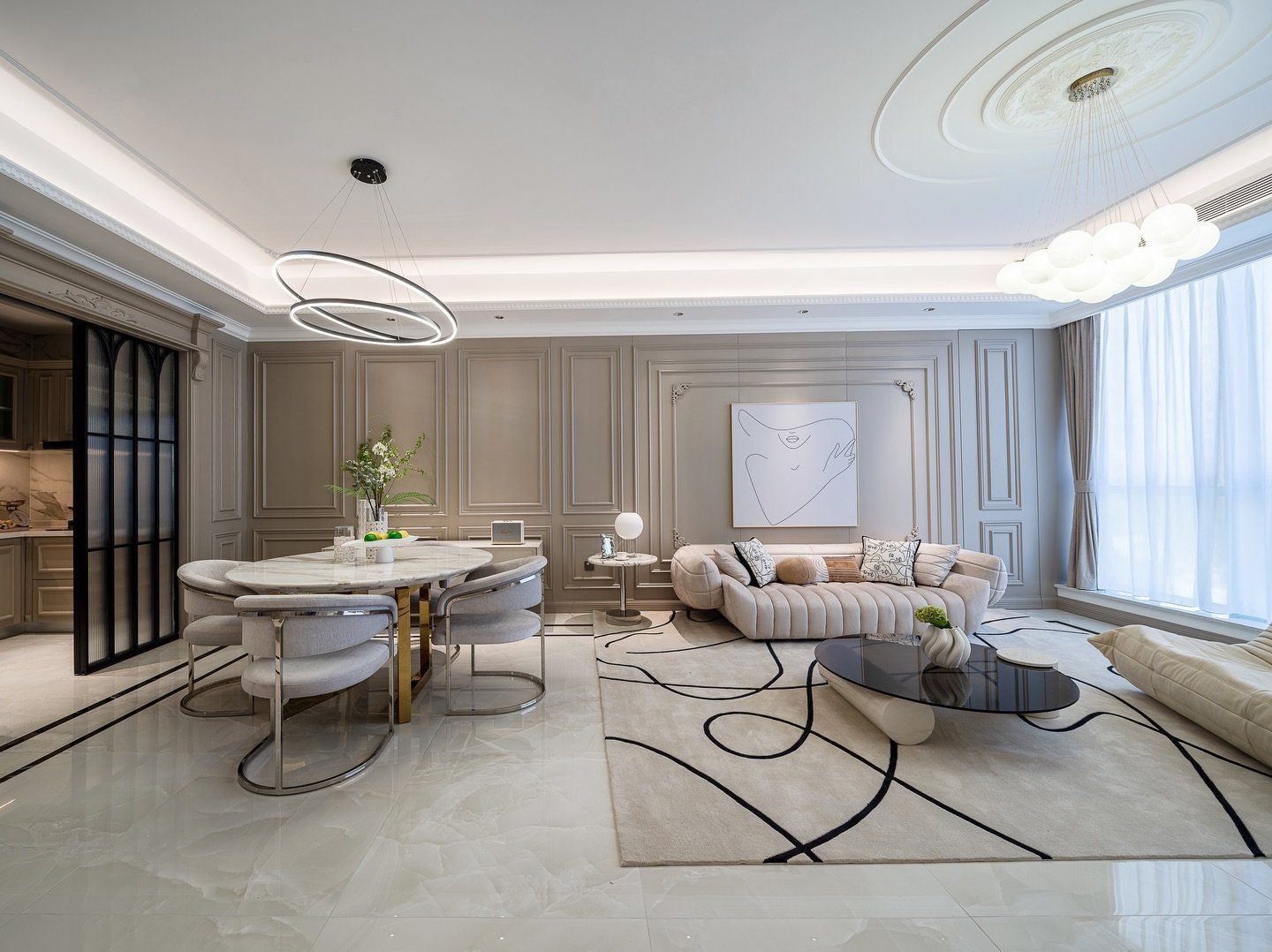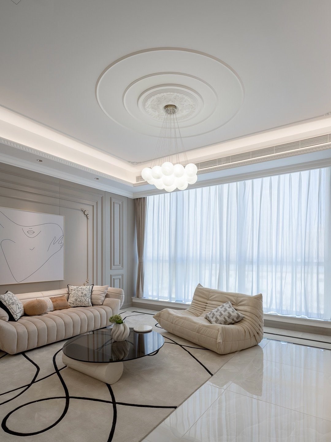 Mỗi bức tường phào chỉ, mỗi đường cong của nội thất đều là sự kết hợp giữa truyền thống và hiện đại, giữa hình thức và cảm xúc. Không gian không phô trương, nhưng vẫn toát lên sự kiêu hãnh — như một quý cô mang trong mình khí chất vương giả nhưng trái tim đầy dịu dàng.
