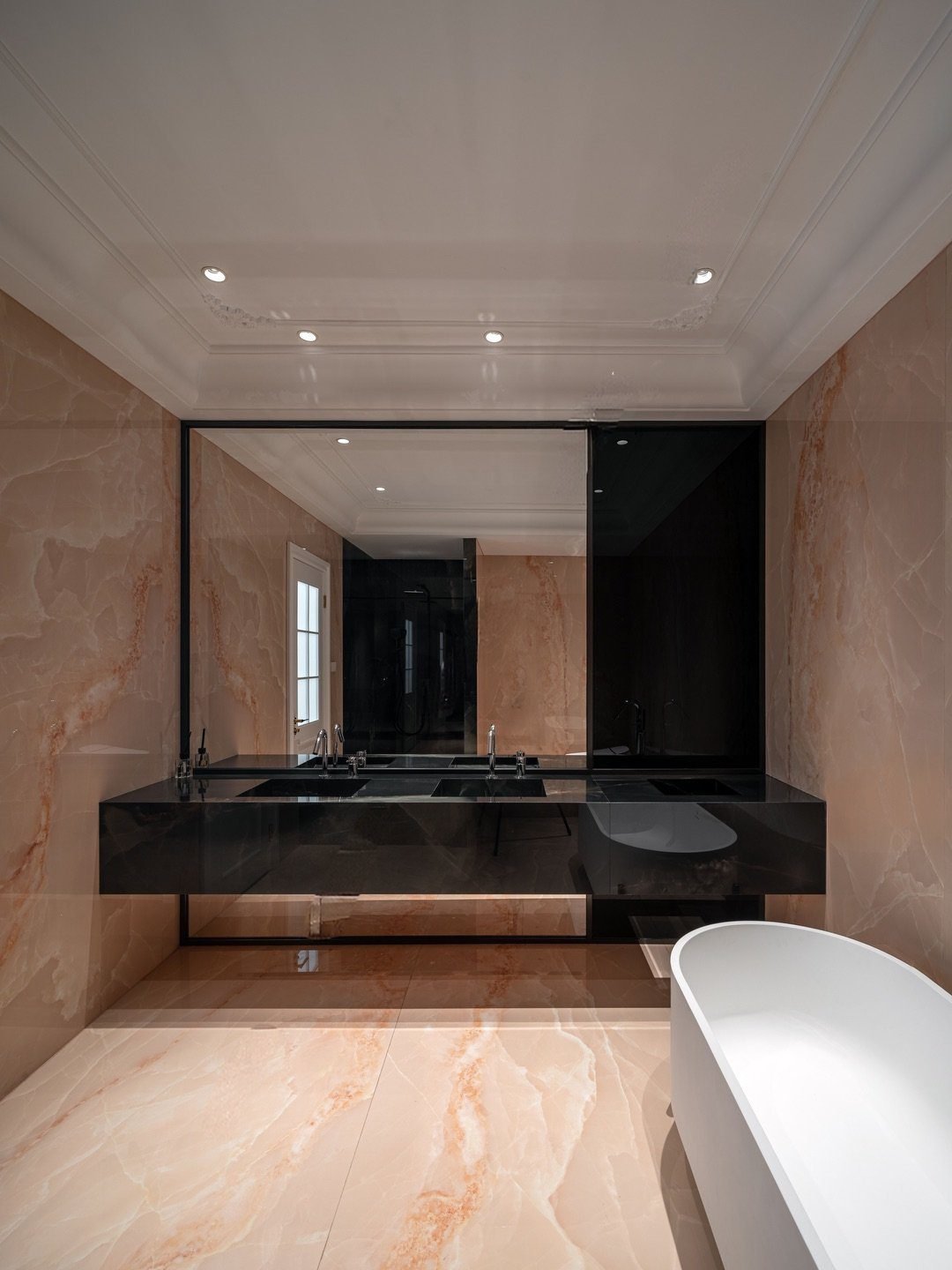 Maison Lissia không ồn ào, không phô trương. Ngôi nhà được kiến tạo như một tấm lụa trắng trải dài — nhẹ nhàng, tinh khiết nhưng đầy chiều sâu. Những đường phào chỉ đơn giản trên tường, những khung cửa lớn phủ rèm ren mỏng, sàn gỗ ấm áp cùng ánh sáng mềm mại phản chiếu qua đèn trần pha lê — tất cả hòa lại để tạo nên một bản giao hưởng yên tĩnh.